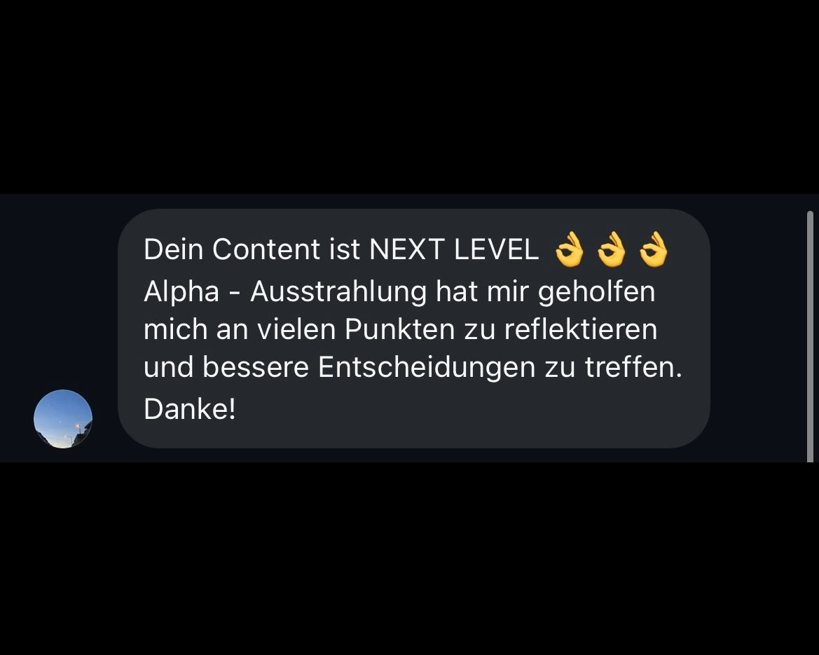 Du verstehst, wie echte Alpha-Ausstrahlung entsteht - aus Präsenz, Authentizität und deinem inneren „Ich bin …“, nicht aus Statussymbolen oder Show.