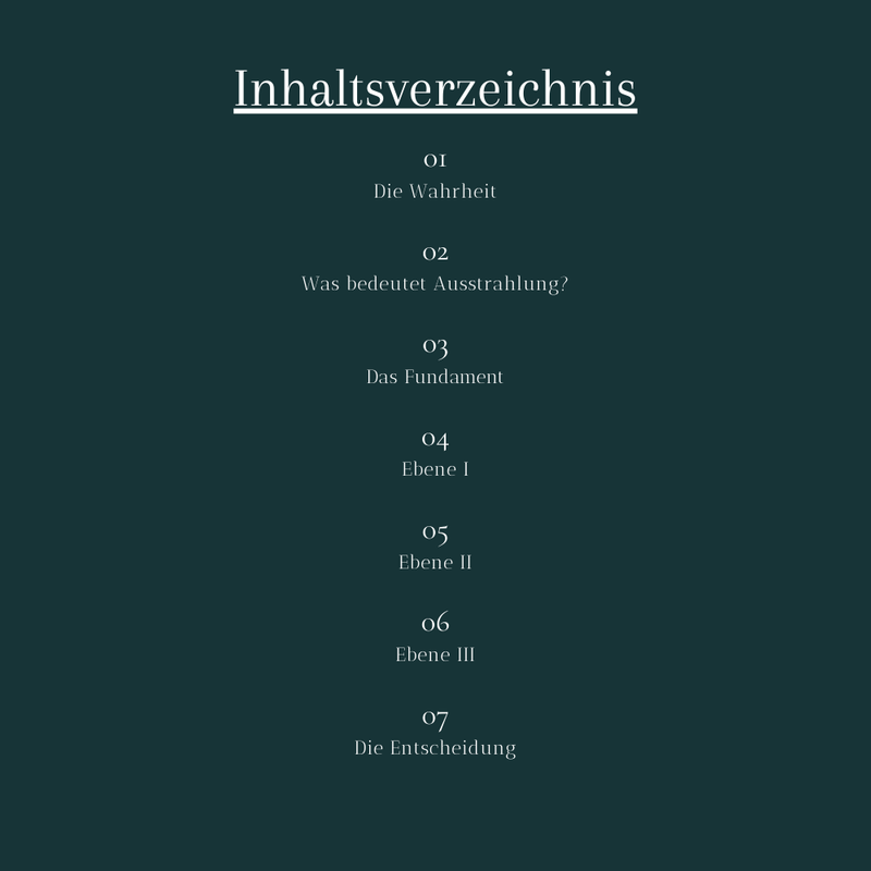 Im letzten Kapitel triffst du die klare Entscheidung, wer du ab heute sein willst - und wie du das Gelernte täglich lebst, damit deine Ausstrahlung zum Beweis deiner Entwicklung wird.